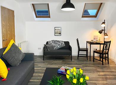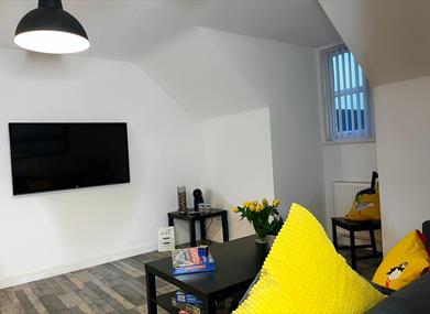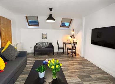 Double bed in the bedroom, with a double sofa bed in the living room. A newly decorated living room with a 56" TV (with in-built apps), board games & jigsaws. A newly refurbished kitchen with all brand new appliances. The bathroom has also just been refitted with all new units.