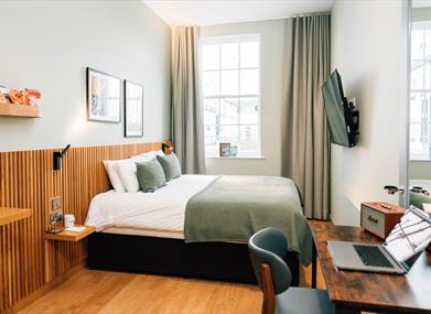 Haslem’s bedrooms come in three main sizes – Snug, Comfy and Roomy. No matter which size you go for, they all include the same great features, from refreshing rain showers to super-comfy beds and smart TVs. Staying a little longer? Haslem’s apartments are the perfect home away from home with king-size beds, super-fast WiFi, extra chill-out space and kitchen facilities.