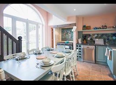 There is one double bedroom beside the delightful seahorse bathroom. Downstairs, a single bedroom has a door opening onto the walled patio garden. The downstairs bathroom features a starfish mosaic shower, while the large downstairs twin bedroom features the level deck shower room with a carpet shark mosaic decorating the floor. The downstairs is level to allow easy access for people with mobility issues. There is plenty of storage space in the utility/cloakroom and a washing machine.