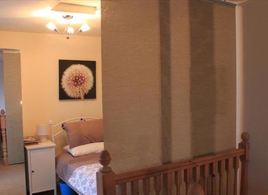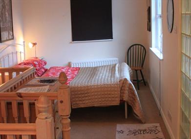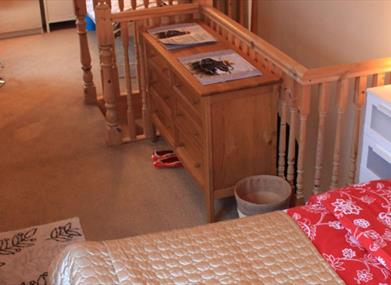 Upstairs the open-plan sleeping accommodation, will suit two + adults, as there is a double bed and a single bed. The bathroom comprises of a Power shower, wash hand basin and w.c.
