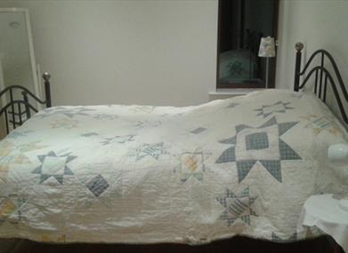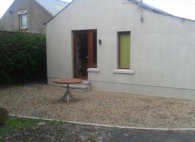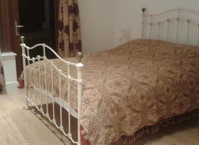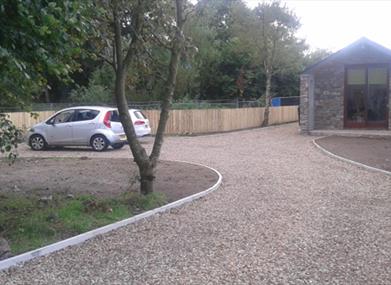 The open plan living/kitchen area has the kitchen, including a washing machine with dryer, dishwasher, cooker, microwave, fridge and freezer at one end and comfortable sofas and wood burning stove at the other. The dining table and chairs are in between. Relax and enjoy the flat screen TV/DVD and the BT wireless internet. There are two bedrooms, one with a king size (five foot) bed, and the other a double bed. Two fold up guest beds and a cot and highchair are also available. The bathroom has an electric shower over the bath and a heated towel rail. There is a heat recovery heating system. A garden and driveway with parking to the front and a barbecue/sitting area at the back. Enjoy the eggs from our friendly chickens, turkeys and ducks and watch our three dwarf pigs through the fence.