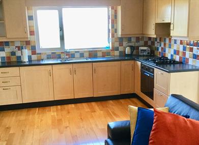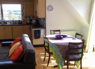 Our accommodation is a beautiful place to relax in after a busy day of sightseeing, or work. It is a large, exclusive access, private dwelling. Open the doors and look out over the countryside as you have breakfast. We have an open plan kitchen/living/dining area. We have a very large bedroom with a super "king size" bed which can be separated into 2 single beds. Our bedroom sleeps 2 adults and up to 2 children (2 single beds can be added). There is also a large en-suite, with extra storage .We are 7 min walk to "the Holestone" which is an ancient Celtic standing stone on the crest of a hill with views over the six mile water valley.
