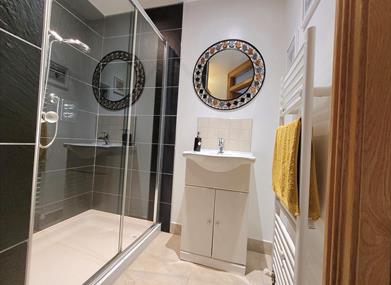 The cottage has 2 downstairs bedrooms, one with a Super King sized bed with ensuite (large shower and wash hand basin) and one other bedroom which has 2 single beds. The cottage sleeps 4. The fully fitted bathroom is also downstairs with shower and bath. Provided as standard are TV with some Free view channels, dishwasher, washing machine, hair dryer, bedding and towels, Gas central heating, DVD player.