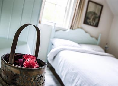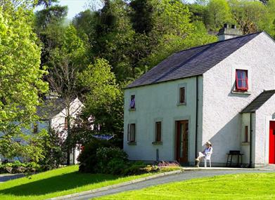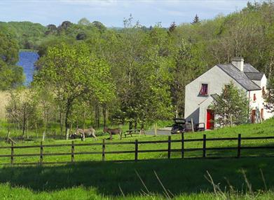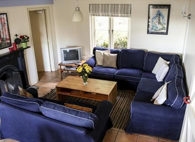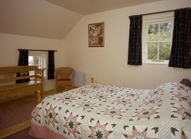 This cottage can sleep nine people and has an open plan kitchen, dining and living area with and open fire downstairs, as well as a double bedroom and shower room and toilet.