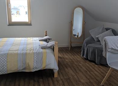 Set in a tranquil setting looking over the north Atlantic coast, taking in views of three counties and two countries.This beautiful studio with calming décor is a fantastic retreat for any couple.Three miles from Coleraine and seven miles from Portstewart, you can enjoy fine dinning and world class golf courses, but also miles of beaches, forest walks, fishing and horse riding. Derry City is only a 25 minute drive away, and a ferry to Donegal 5 mile away.