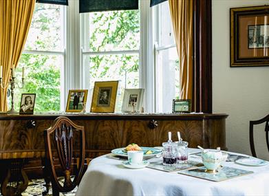 Built in 1888, by our great-grandfather, the house is set at the end of a short drive and is surrounded by mature oak, sycamore and pine trees. The reception rooms are beautifully spacious with high ceilings and ornate cornicing. Breakfast is served in the dining room which boasts a large antique table and a Broadwood grand piano alongside the original fireplaces, pitch pine doors and woodwork. I am passionate about using locally sourced produce and guests can enjoy homemade preserves and soft fruit from the walled garden.