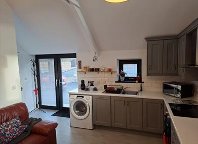 The Cottage has one bedroom, a living dining, work area and shower room. Two parking spaces are available.