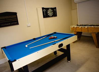 Private Games Room with a Pool table,Table Football, Dartboard and Lawn Bowls. Private well maintained gardens,outdoor dining facilities and BBQ. Plenty of parking space. Welcome Pack.