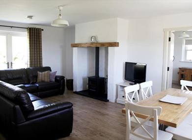 The well designed interior is finished to a very high standard to include a spacious fully fitted kitchen, large utility room, cloakroom with wc, comfy leather sofas, cosy wood burning stove and under floor heating.