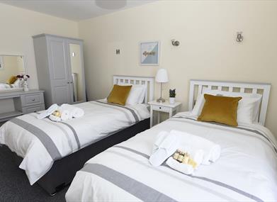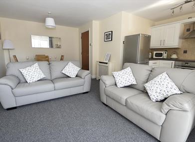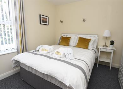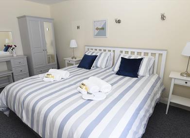 There are two bedrooms and the flexible sleeping arrangements can accommodate up to four. The master bedroom has a super king size bed which can be split into 2 twin beds, a wardrobe and dressing table. The second bedroom has a double bed and wardrobe.