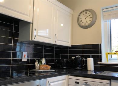 The kitchen is well equipped with cooker, microwave, fridge, dishwasher, washing machine, coffee machine, kettle, toaster. We provide supplies or tea, coffee, basic condiments, paper towels, tea towels, washing machine tablets, washing up liquid, dishwasher tablets.