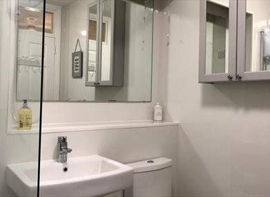 The bathroom has a bath with electric power shower over the bath. We provide toiletries and towels.