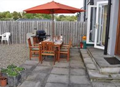 In the fenced & gated rear there is a patio with a gas BBQ and luxury dining furniture for six, and two sun loungers. Cots & high chairs are available free of charge. Small pets are very welcome, with an adjacent open area for those morning and evening strolls. Offroad parking.