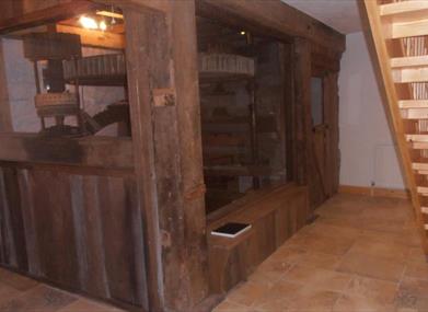 The top floor of the mill has been restored and remains mostly in its original condition. On display are the original grinding stones, grain hoppers and old original beams and sack hoist. This area also doubles as a games room with table tennis and some exercise equipment.