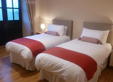The upper floor of the cottage comprises of two spacious bedrooms, one twin and one can be used as twin or double with large king size bed. Both bedrooms have en suite facilities. There are also two extra guest beds.