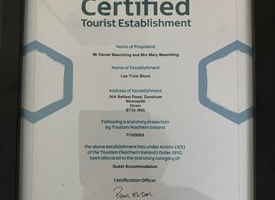 Les Trois Blocs is a separate annex in a detached house, situated close to the village of Dundrum which is within walking distance. You are only a short drive from the Mourne Mountains, Newcastle, Tyrella beach, Murlough beach and Tollymore and Castlewellan Forest Parks. it's an ideal place to base yourself for a visit to the Mourne area of outstanding natural beauty.