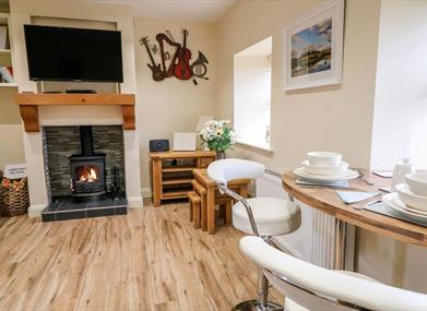 For those quiet evenings when you have spent all your energy walking around the rolling hills, you can look forward to cosying up on the sofa in front of the woodburning stove and the Smart TV.