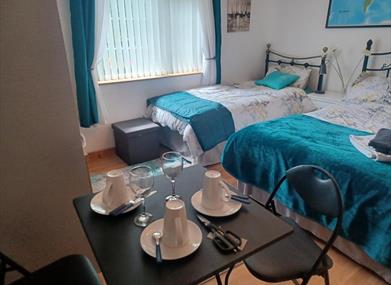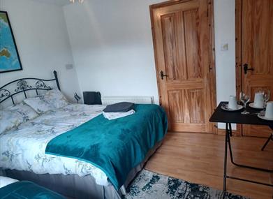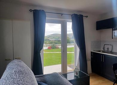 Our comfortable accommodation has a living room and kitchenette with full-size sofa bed, bedroom with a double and single, and an ensuite with electric shower, toilet and wash basin.