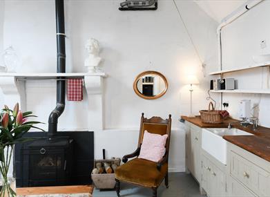 It has been refurbished into comfortable and stylish accommodation. The Milk House has an open-plan, but cosy living area with a wood burning stove and fully equipped kitchen. Two upstairs double bedrooms boosting chic agricultural-style interiors, exposed brickwork and wood panelled walls. Downstairs has a large walk-in in shower area with a WC upstairs. Take a seat in our peaceful private garden, a perfect way to end the day.