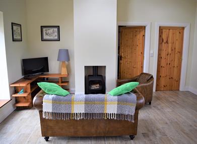 The Bothy is a luxury two person holiday unit consisting of a spacious open plan living area and kitchen with feature truss ceiling and woodburning stove. Adjacent to this is the large double bedroom and shower room. As well as the main front entrance, the main living area also has patio doors which open out onto a private outdoor seating area. Adjacent to this are two reserved parking spaces for the dedicated use of Bothy guests.