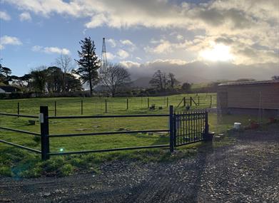 There is a field for children to play football, badminton, all equipment supplied. There is a lovely grassy area with swing seat for you to relax and enjoy the amazing views of the Mourne Mountains. People who stay sometimes climb Slieve Donard and retreat to the hot tub that evening for a well earned rest, where they can look at the Mountain they conquered!