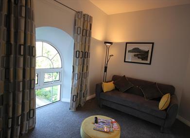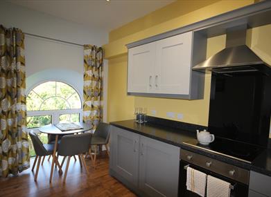 Accessed via a private entrance, the apartment is surrounded by beautiful private gardens and patios. With its 4 arched windows - each offering a stunning view of the local countryside, the Glenann Apartment is the personal favourite of many of our guests.Ideal for couples, the apartment comes with its own private veranda.