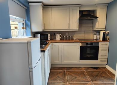Finished to an extremely high and luxurious standard with every attention paid to the smallest of details. 2 double bedrooms, bespoke wet room, fitted kitchen, lounge with wood burner and paved patio with furniture.
