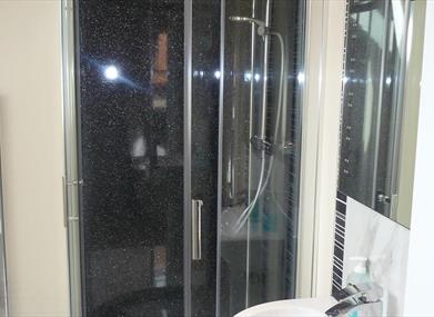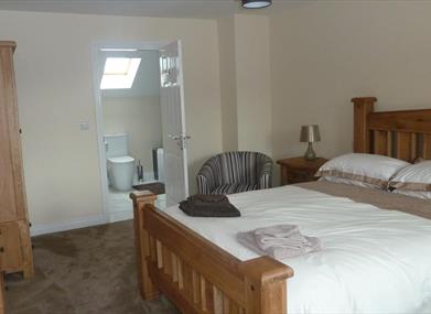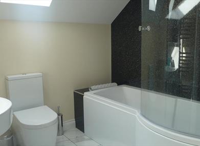 Upstairs there are two large family rooms each consisting of a king size and a single bed. Both bedrooms have en-suites – one with a shower room and the other with a bathroom with over bath shower.