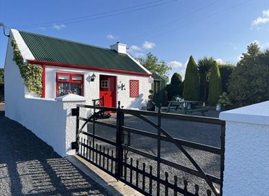 The Cottage has a country style kitchen with microwave, built-in oven, hob, fridge and fridge/freezer. A large smart TV overlooks the cosy seating area. The old fashioned sitting room is perfect to congregate. It has a large corner sofa and recliner chair to sit back and indulge in the stunning countryside views! A private sunroom to the back of the cottage provides the perfect location to watch the sunset in the evenings and listen to the chirping birds retire from their busy day among the lush of pine trees and farmland. A beautifully decorated stone barn bursting with character sits in the garden and allows one to 'chill' and 'relax' while taking those precious photos over the red half door!