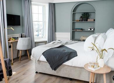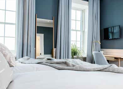 Georgian sash windows frame spectacular views of Donaghadee lighthouse, Copeland Islands and the Irish Sea over to Scotland. The attic room overlooks the rooftops of the town, with the option for twin beds or King.
