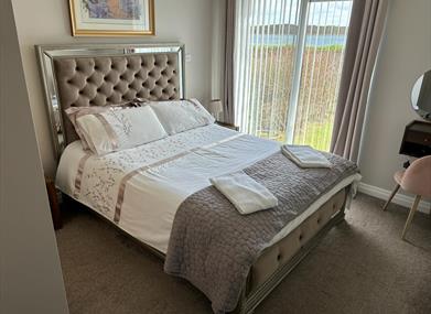 Sleeps up to 6 people, 2 bedrooms with K/S beds, both en-suite, both with patio doors opening into the garden, both sea views, 1 bedroom with 2 single beds facing the main bathroom, again sea view. Spacious living room with patio doors opening into the garden, overlooking Dundrum Bay itself, with outside seating, BBQ, living room with smart TV, wifi, CD player, electric flame fire, table/chairs, corner sofa & seating. Kitchen, sea view, equipped with hob, oven, washer/dryer, dishwasher, fridge/freezer, microwave, kitchen utensils. Gas heating, smoke alarms, carbon monoxide alarms, towels/bedding supplied, spacious entrance hall.