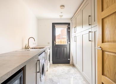 The ground floor has a separate utility room with a washing machine, tumble dryer and a WC with LED Mirror. Additionally there is a ground floor bedroom with a king size bed.