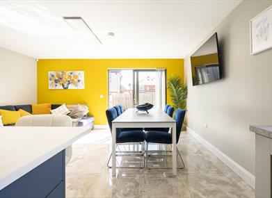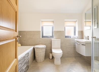 Upstairs there are four bedrooms (one en-suite) and a bathroom comprising a new suite including shower, bath and LED mirror. Of the upstairs bedrooms, there are three with double beds and one with a king size bed and built in sliding wardrobes. The property has unlimited high speed internet and three Smart TV are provided, one being a large 60 inch. Free onsite parking is available for two cars.