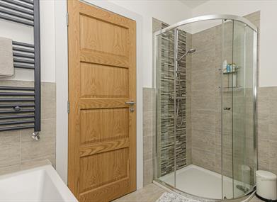 The large open plan kitchen/dining/living has a brand new fitted kitchen with integrated dishwasher, fridge freezer, double oven and five ring gas hob. The extending dining table seats 8. The seating area has a comfortable three seater sofa and leads to the patio area via double doors. The ground floor has a large utility room with a washing machine, tumble dryer and a WC. Upstairs there are four bedrooms (one en-suite) and a bathroom comprising a new suite including shower, bath and LED mirror. Of the bedrooms, there are three with double beds and one with twin single beds. The property has unlimited high speed internet and a 50 Inch Smart TV is provided. Free onsite parking is available for two cars.