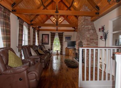This 18th Century ashlar sandstone Gatelodge has been sympathetically restored and renovated using natural stone and wood products. This helps to promote the feeling of the character and charm of a bygone age whilst still accommodating modern day requirements. Relax in the living room area with its vaulted oak beams and spalted beech ceiling boards above.