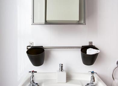The bedroom has a kingsize bed with two single duvets, large double wardrobe, bedside cabinet and lamp. Beds have luxury duck feather and down pillows and duvets enhanced with eco-friendly pure linen.The living room has a pull down single ‘Murphy’ bed. There is a couch that can be set up as another single bed with a Duvalay. A camper bed is also available.