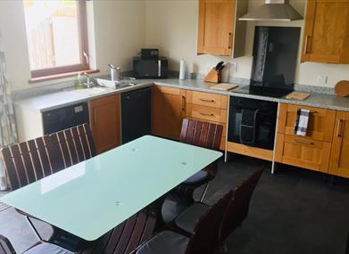 Large fully equipped kitchen/diner with electric oven, grill, hob, mircowave, toaster, kettle. Spacious shower room with electric shower.