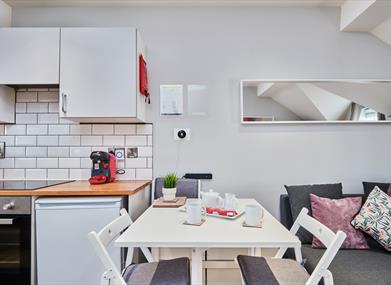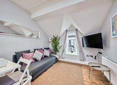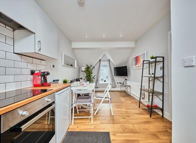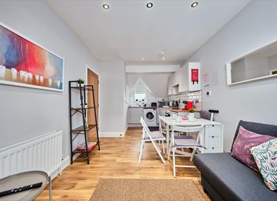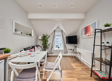 As soon as you step foot in this beautiful penthouse apartment, you're greeted by the warm furnishings and hardwood floor yet highly comfortable open-concept living area, decorated elegantly, that complements the fantastic location in the heart of Portrush.