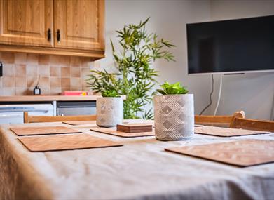 Unwind and catch up with your loved ones in the living room while the food is prepared. When the food is ready, gather at the dining table and savour a delicious meal in an inviting atmosphere.