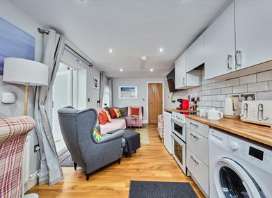 As soon as you step foot in this beautiful two-floor apartment, you're greeted by the gorgeous yet highly comfortable open-concept living area, decorated elegantly, that complements the fantastic location in the heart of Portrush.