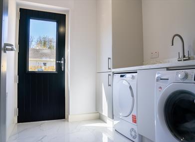 All three double bedrooms are bright and minimalistic and the beds deliver a supreme level of comfort. The upstairs bedroom comes equipped with its own ensuite bathroom.