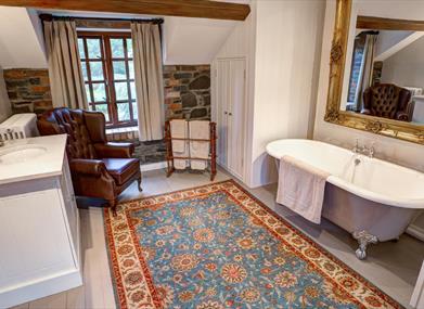 Upstairs a double room with large bathroom including roll top bath.