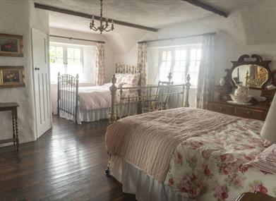 Upstairs there are 4-5 large bedrooms with luxurious beds including a king-size four poster, antique brass beds, original spring double, antique mahogany double, and old-time twins.
