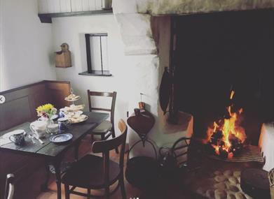 The ground floor hosts a large, comfortable family sitting room full of character, where guests can gather on a cosy winter's night and settle in for a family film night around the open turf fire.