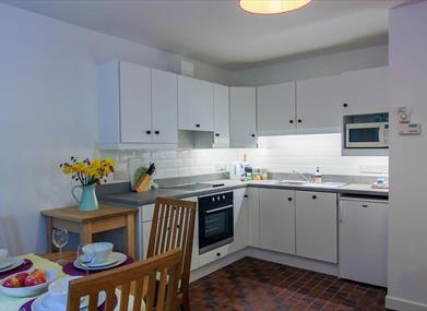 The kitchen is located downstairs, and was refurbished in 2016. Plenty of storage space, along with a full oven and hob, microwave, and dishwasher, as well as being fully equipped, means you can make the most of your self-catering holiday. The shower-room is also located on the ground floor.