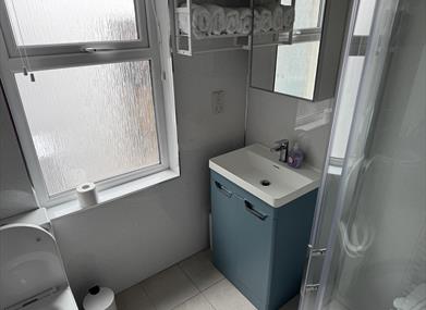 Bathroom with shower.