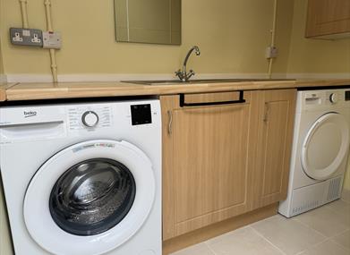 Separate utility room with washing machine and tumble dryer.