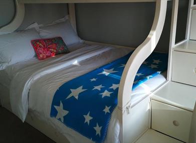 3 bedrooms sleeping 6: 1 king bed, 1 triple bunk and 1 single.