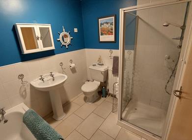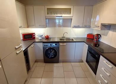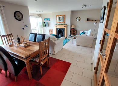 The living / dining areas have 2 comfy sofas and a chair, gas fire, TV, WIFI, dining table with 6 chairs.The separate kitchen is fully equipped.