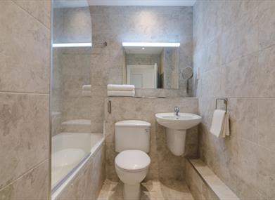 Our Alfred Street apartment’s spacious layout and quirky decor features, such as a chalkboard wall and breakfast bar, offer a unique and comfortable home from home for your stay in Belfast.Comfortably sleeping 4, our master bedroom contains a double bed and en suite bathroom, whilst the second bedroom contains 2 single beds. The bedrooms are complete with dressing tables, mirrors and hair dryers. Main bathroom has bath with en suite having a walk in shower.